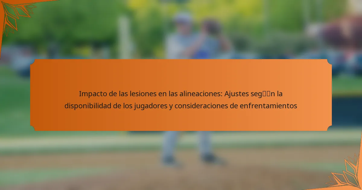 Las lesiones pueden remodelar drásticamente las alineaciones de los equipos, afectando la disponibilidad de los jugadores y la dinámica general del equipo. Para mantener un rendimiento competitivo, los equipos deben ajustar estratégicamente sus alineaciones, considerando no solo el estado de los jugadores lesionados, sino también las fortalezas y debilidades de sus oponentes. Una gestión efectiva de las alineaciones es esencial para navegar estos desafíos y mejorar las posibilidades de éxito del equipo en cada partido.