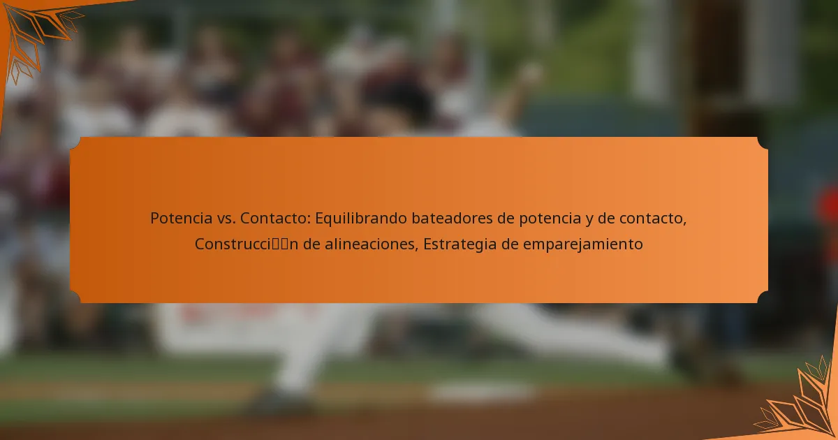 Equilibrar a los bateadores de poder y de contacto en una alineación es esencial para maximizar el potencial ofensivo. Una alineación bien construida debe incluir una mezcla de jugadores que puedan batear con poder y aquellos que destacan en hacer contacto, permitiendo versatilidad contra varios estilos de lanzamiento.